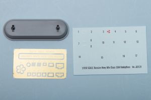 The decals included are very simple and consist of the depth markers on the bow, fin, mid-hull, and aft hull. There is also a hull number (691), although it was rare to see these on operational submarines. Finally, there are decals for the hatch surrounds and various outlines. The color diagram provides clear locations for all the decals, as well as accurate painting notes, including the white demarcation line along the length of the hull.