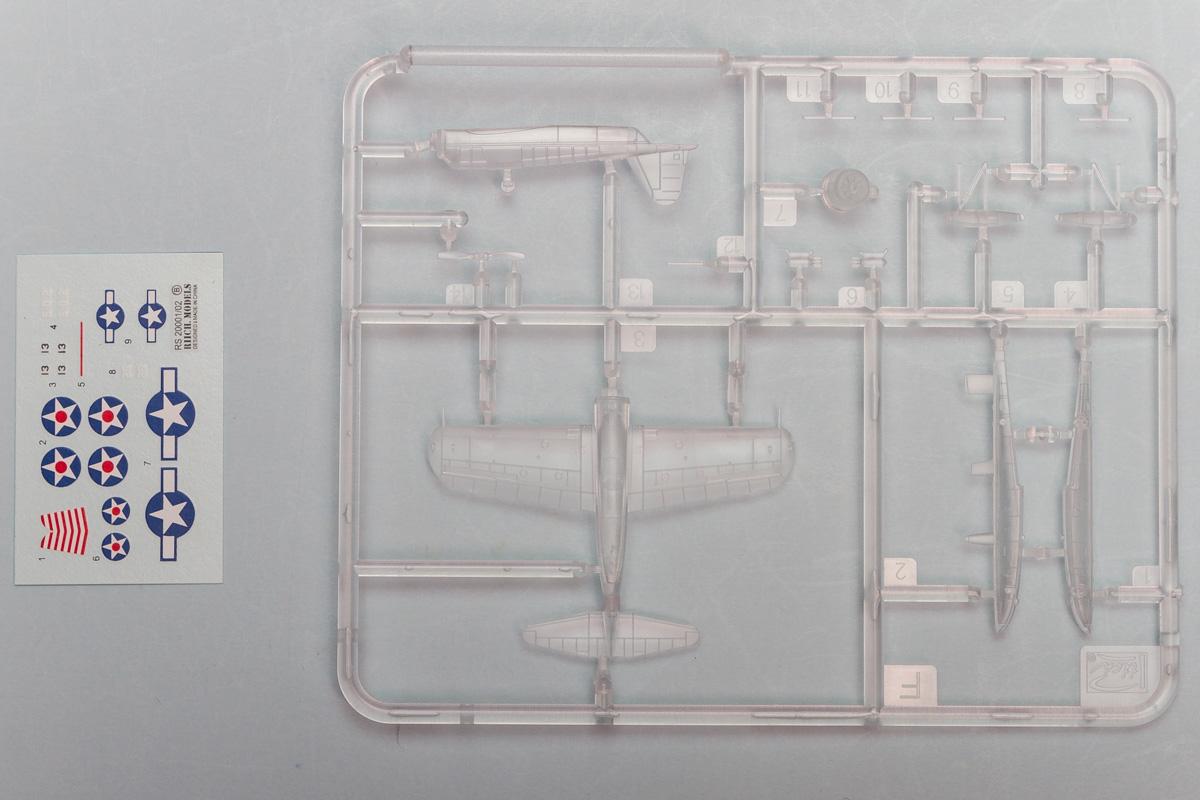 Undoubtedly aimed at the recent spate of 1/200 ship kits, this small set from Riich Models caters to those who might want to have a catapult or two displayed alongside a finished USS Arizona or equivalent. The small box comes with two complete catapults and two Vought OS2U Kingfishers. The parts overall are crisply molded, with the Kingfishers molded in clear to aid in painting.