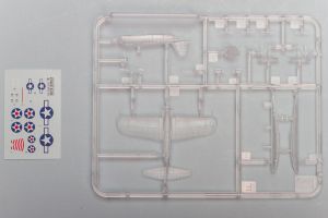Starting with the latter, the construction of the Kingfisher is very simple. The upper fuselage is separate from the lower fuselage/wing piece, so the simple fact of gluing those two parts together yields a nearly complete Kingfisher. Extra details to add to the model include a two-piece float, a separate engine cowling, and separate outrigger floats. Smaller details include the radio antenna, underwing bombs, and a separate propeller.