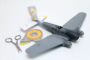 The most common problem with masking colors is the build-up of a ridge between two colors. This generally occurs when you have to cover a darker color with a lighter one, so the plan with this model is to paint the white first, then the yellow fuselage band and wing undersides. This will be followed by the tail stripes, and then finally the camouflage colors. In this manner I will always be putting a darker color over a lighter one, which means there is very little likelihood of a paint ridge building up.