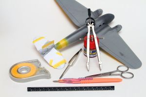 The move from single color schemes to multi-color schemes means that there needs to be some sort of planning involved, in order to get the best results. The main rule here is to build up your paint coats from lightest shade to darkest (though there are exceptions that we will cover in future articles). For this article, I decided to build the kit as a Hungarian He 111P, which means that in addition to the camouflage, I will also need to paint the Hungarian markings on the tail. Jotting down the various colors, I came up with a total of seven: white, red, and green for the national markings, RLM 04 yellow for the fuselage band & underwing sections, and RLM 70, 71, and 65 for the Luftwaffe camouflage.