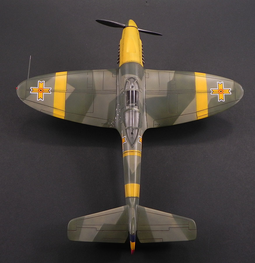 Prior to Operation Barbarossa (the German invasion of Russia) most Rumanian fighters had their cowls painted yellow, as was the convention at the time for Axis aircraft. In preparation for RLM-04 Yellow, the cowl area, wing, and fuselage stripes were taped off with Tamiya tape. To ensure there would be no bleed–thru of the yellow, the edges of the tape were rubbed down with a small round embossing tip. This a step that is worth the extra time it takes especially when you remove the tapes to see near perfect lines requiring little/no touch-up.