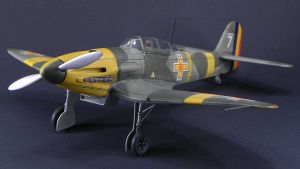 Rumania received its first complement of Heinkel He-112 B-1s in July of 1939 with a total of 30 aircraft ordered. The type served the Rumanian Air Force with distinction being used for both air-to-air operations and ground attack. By late 1943, the He-112 was replaced in Rumanian service by the superior IAR-80/81 and the newly acquired Me-109G. At this time, the remaining He-112s were relegated to training duties where they soldiered on until 1944 although some reports say the type continued in this role until 1946.